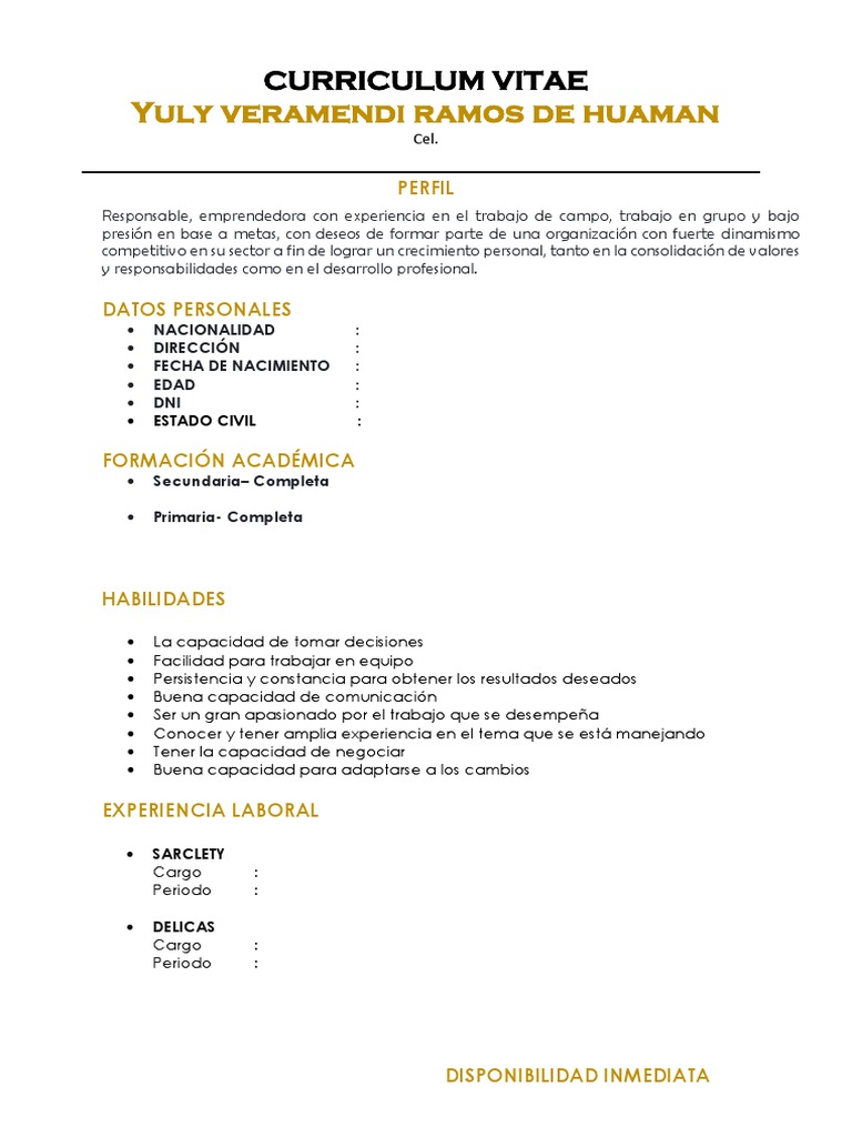 Resume En Español Pleasant Formato De Curriculum Vitae Para Rellenar