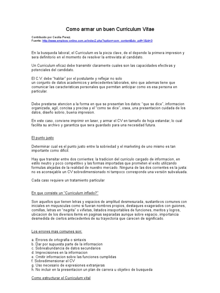Cecilia Perez Como Armar Un Buen Cv