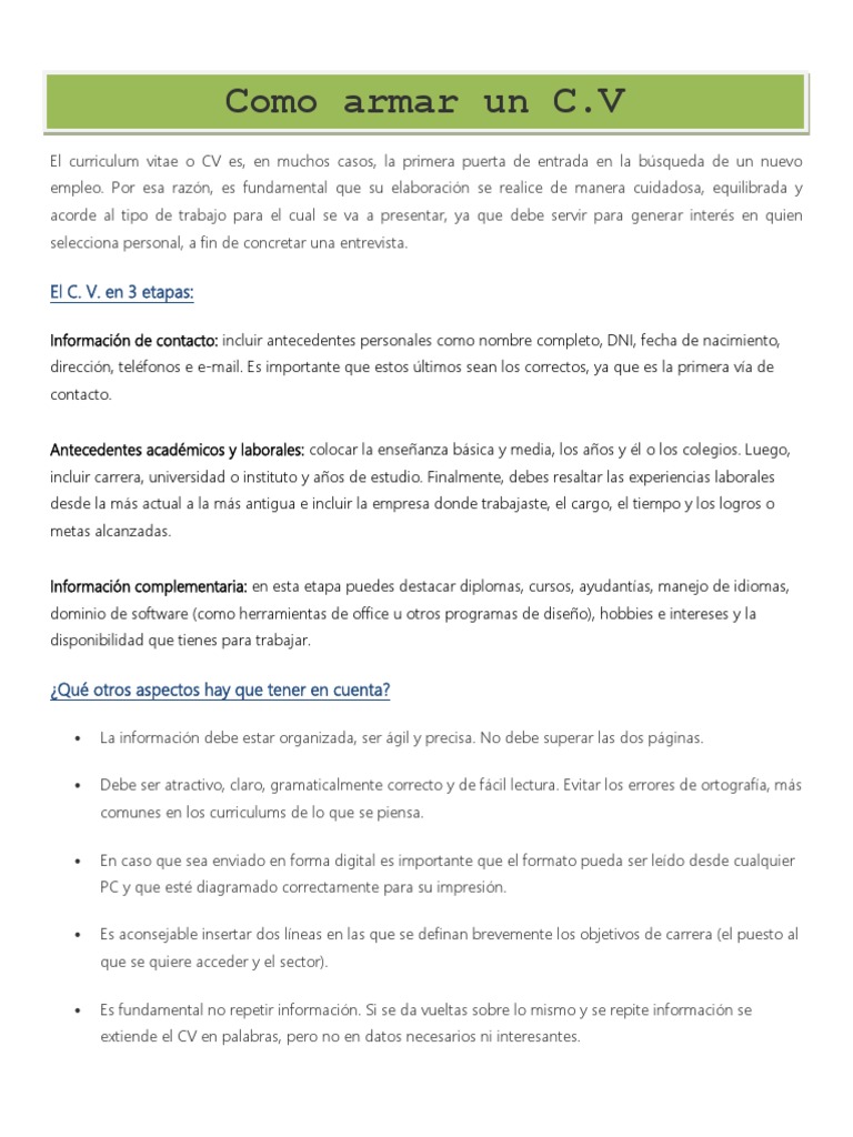 Aquí estas están los mejores tips para saber como hacer un curriculum de calidad. Participación de matías ghidini gerente general de ghidini rodil en el inversor con tomás bulat por a24 el sábado 5 de octubre de 2013 explicando como confeccionar el mejor cv que nos. El currículum vitae es uno de los documentos más importantes en la búsqueda de empleo.